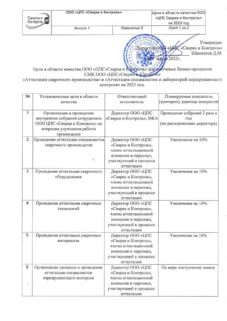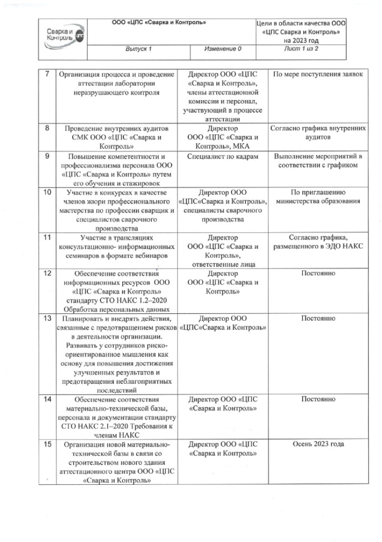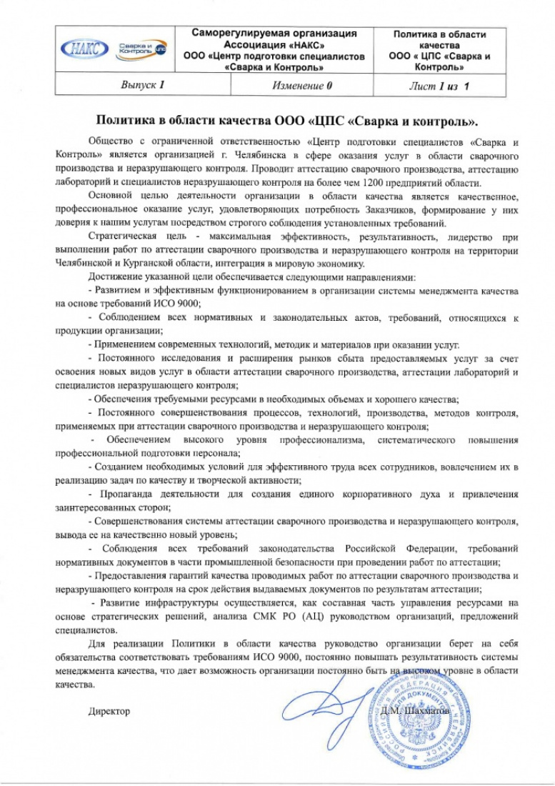 Система менеджмента качества ООО "ЦПС "Сварка и контроль"