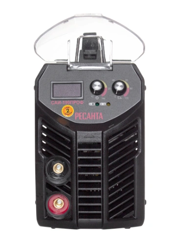 Регулятор сварочного тока на передней панели позволяет выставить нужный ток в зависимости от диаметра электрода. Кроме того, аппарат оснащен регулировкой форсажа дуги. Цифровой дисплей наглядно отображает параметры сварочного тока.