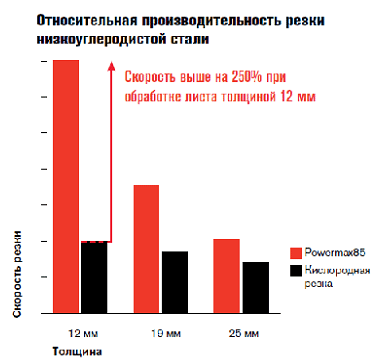 Толщина реза и минимальная скорость резки