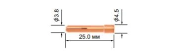 Цанга — нужна для того, чтобы держать вольфрамовый электрод. Цанги бывают разных диаметров. Стандартная цанга Parker P13N24 имеет диаметр электрода 3,2 мм, 1/8 дюймов.