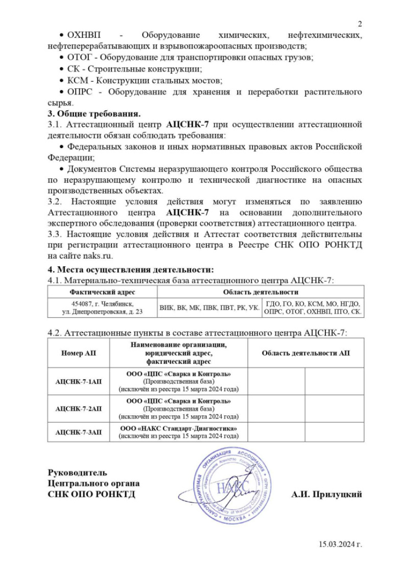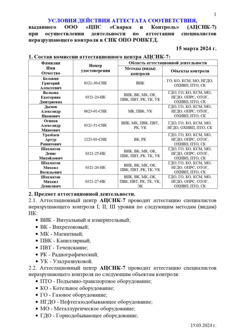 ООО «ЦПС "Сварка и Контроль» Наш аттестационный центр вошел в "Перечень аттестационных центров по аттестации специалистов неразрушающего контроля и аттестации лабораторий неразрушающего контроля, зарегистрированных в СНК ОПО РОНКТД. Аттестация проводится в соответствии с СНК ОПО РОНКТД-02-2024 "Система неразрушающего контроля на опасных производственных объектах. Аттестация специалистов неразрушающего контроля"